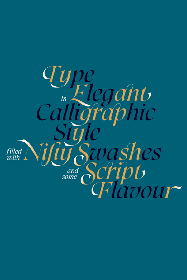 Caligo is an Opentype typeface based on calligraphy done with a parallel pen. It's classic and elegant with a modern twist, featuring flared serifs, lots of ligatures and swashes. It has four styles: poster for large scale, text for small sizes and the corresponding italics. It's great for book cover and signage design where beauty and tradition are important. The font can be used for fashion, jewelries, novels, magazines, and many more.