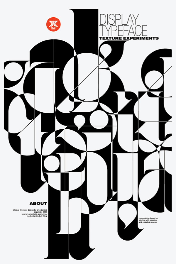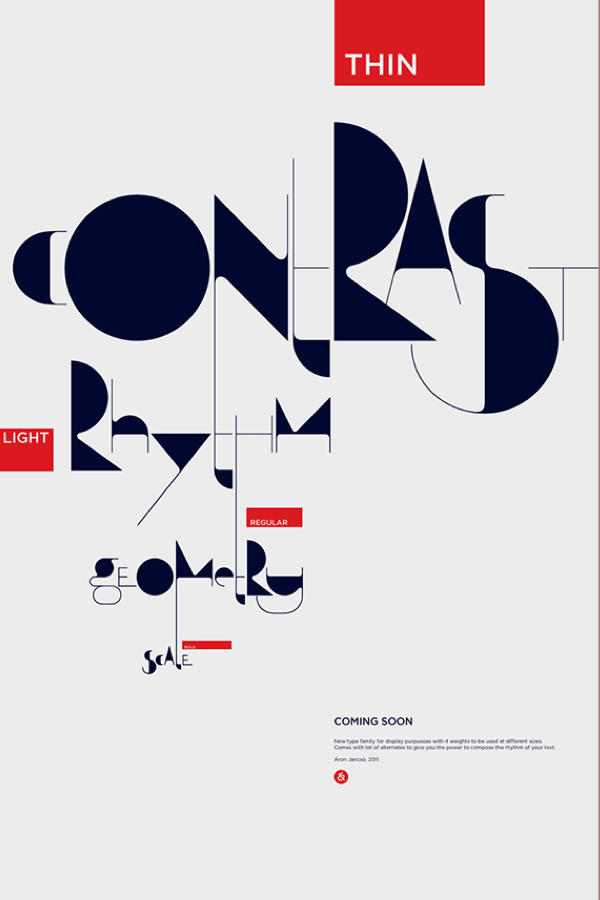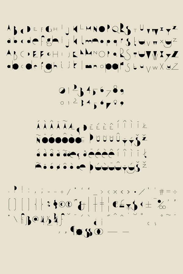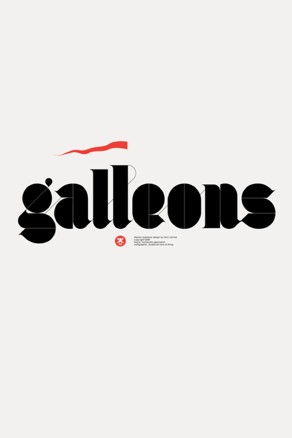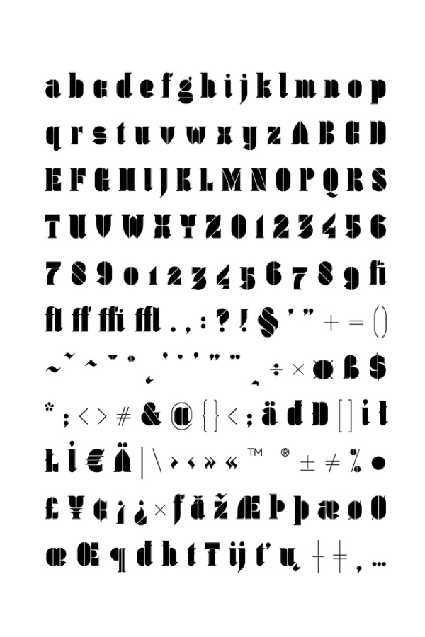 The design features infinite contrast in stroke width, traditional serif anatomy and geometric modernist style.