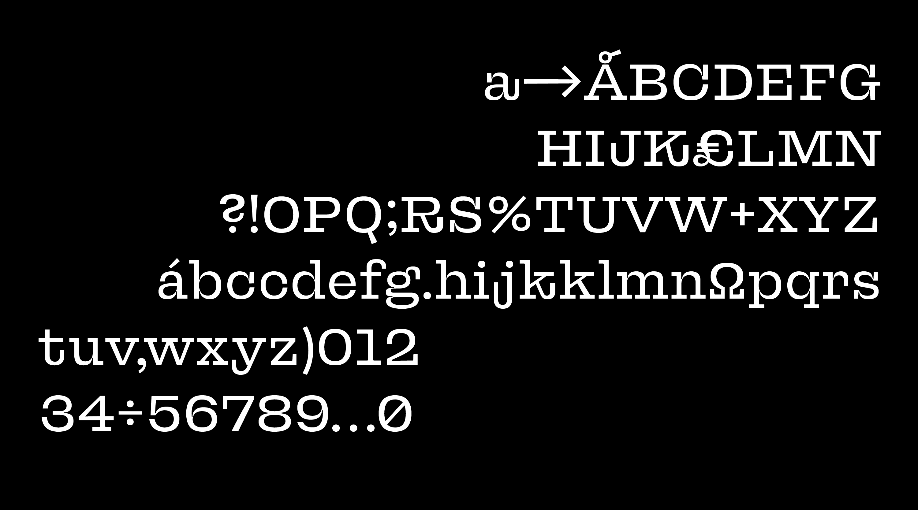 A thunderous and fresh slab serif design in eight styles developed by Béla Frank between 2013-2018